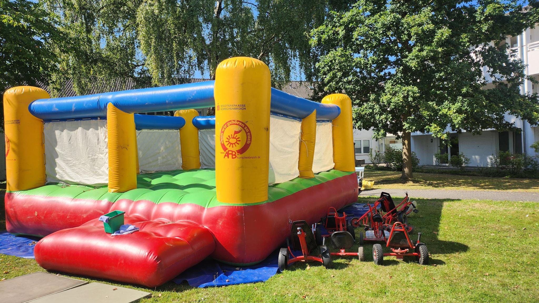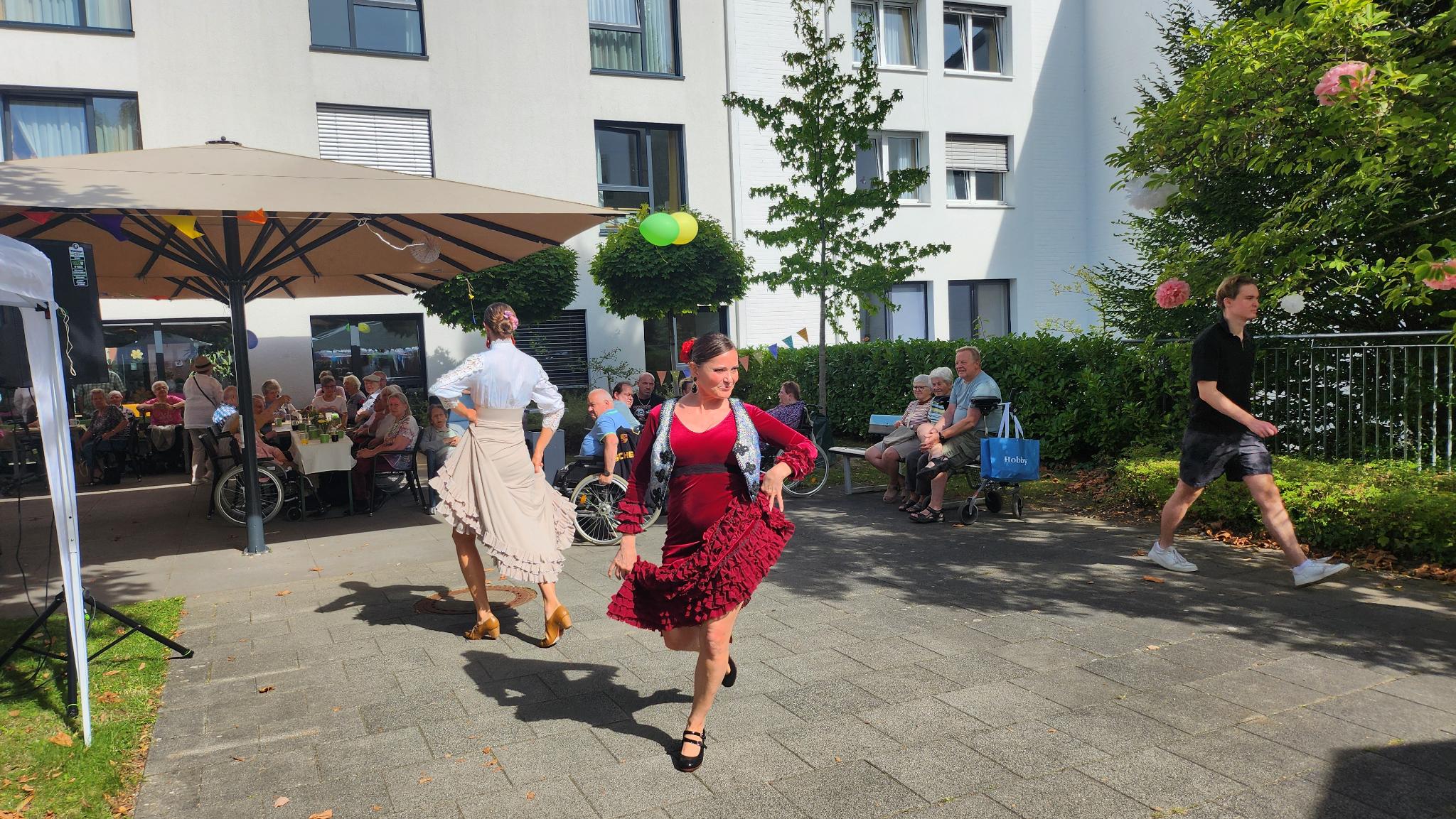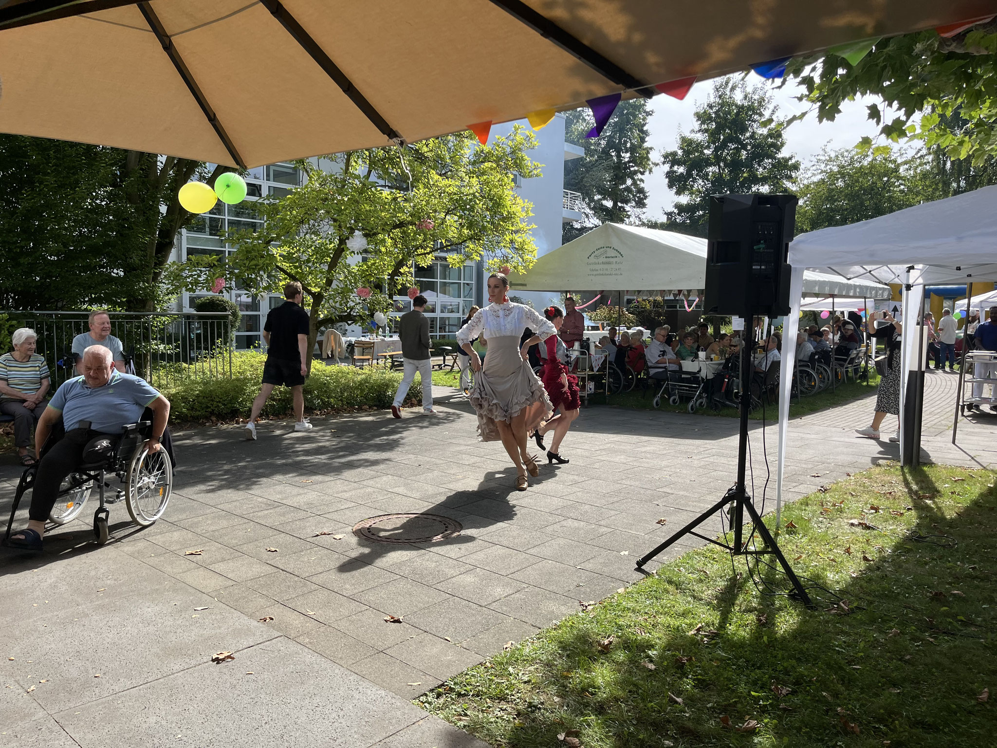 Am Sonntag, den 30.06.2024 fand unser jährliches Sommerfest ab 14:30 Uhr im Park des Seniorenhauses statt. Das Wetter hat trotz aller Befürchtungen gehalten und es blieb trocken. Nach Kaffee & Kuchen und einer Eröffnungsrede, erwartete die Bewohner und Besucher des Festes ein buntes Programm: Die Juniorengarde der Prinzengarde der Stadt Mönchengladbach, Jacqueline Kubissa mit ihren Tanzgruppen und der Ehrenamtlerinnenchor aus dem Haus. Die Band "die Kleinenbroicher" sorgte für musikalische Unterhaltung und regte den ein oder anderen zum Schunkeln an. Neben diversen Ständen: Schminkstand, Armbänder basteln/ Tattoos, Glücksrad, Eis/Eiskaffee, veranstaltete der Förderverein des Seniorenhauses Korschenbroich eine Tombola mit vielen tollen Gewinnen.