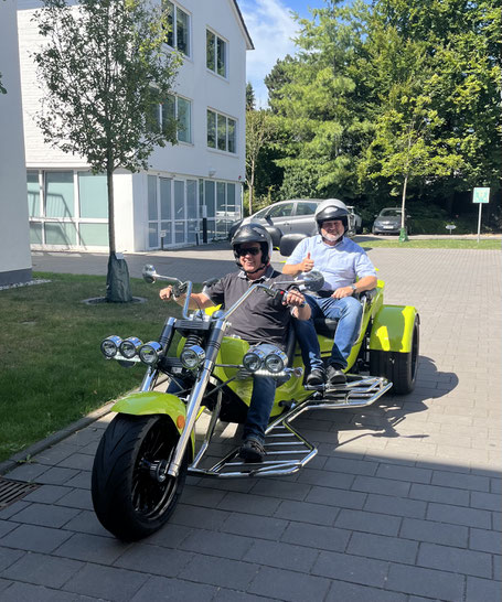 Unser Chef (vorne) besucht das Haus zwischendurch mit seinem Trike, dabei kommt es zu der ein oder anderen Mitfahrgelegenheit oder Ortserkundung.